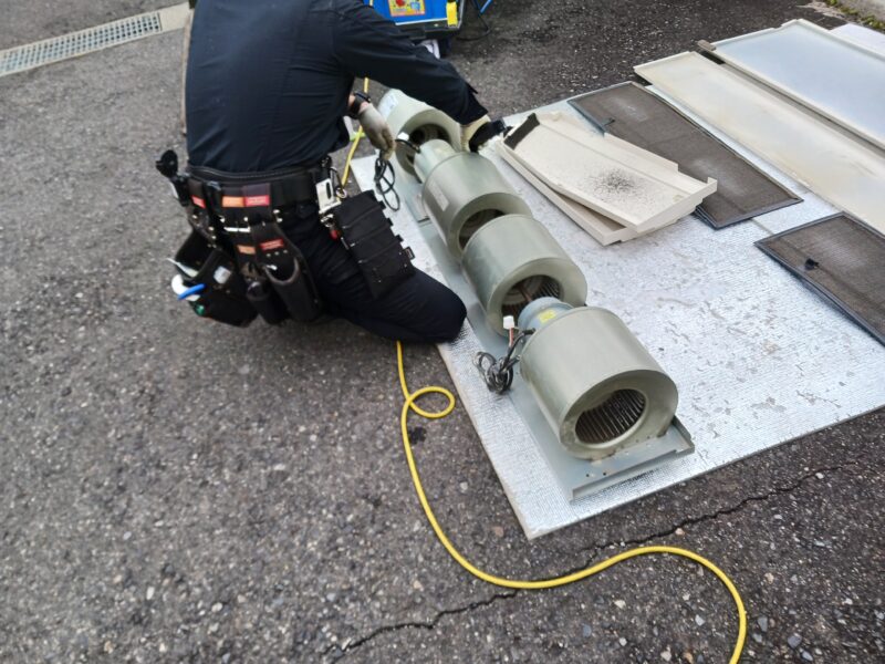 今回は、大規模施設に設置されている業務用エアコンの洗浄作業を行いました。一般家庭用とは異なり、施設や店舗などで使用される大型のエアコンには、実は法律に基づいた管理義務があることをご存じでしょうか。
